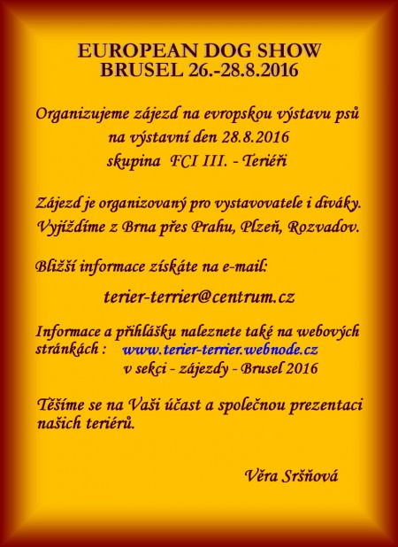 Jsme otevřeni i pro Vaše návrhy na pořádání dalších akcí. Toto jsou Vaše stránky pro všechny teriéry.